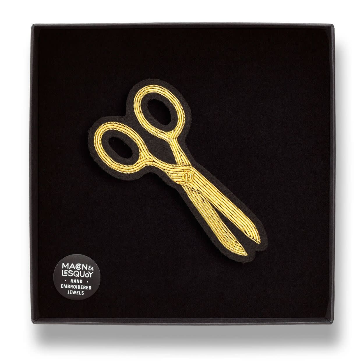 Alle broches van Macon & Lesquoy worden met de hand geborduurd in Pakistan. De gedetailleerde ontwerpen combineren elegantie en humor, waardoor elk stuk een eyecatcher is.