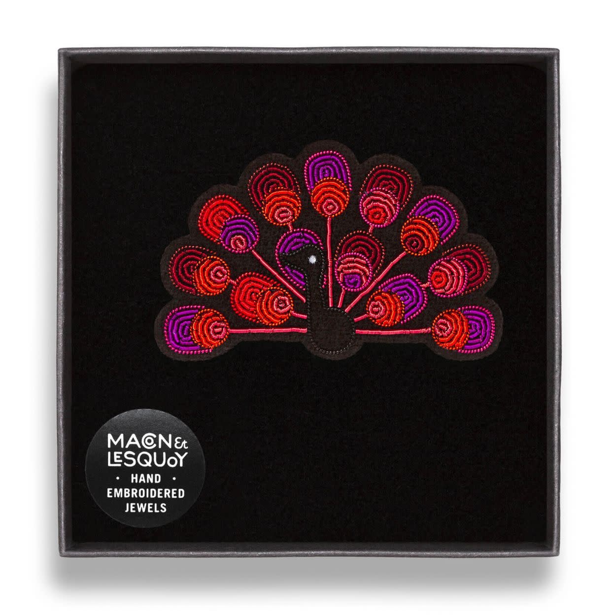 Alle broches van Macon & Lesquoy worden met de hand geborduurd in Pakistan. De gedetailleerde ontwerpen combineren elegantie en humor, waardoor elk stuk een eyecatcher is.