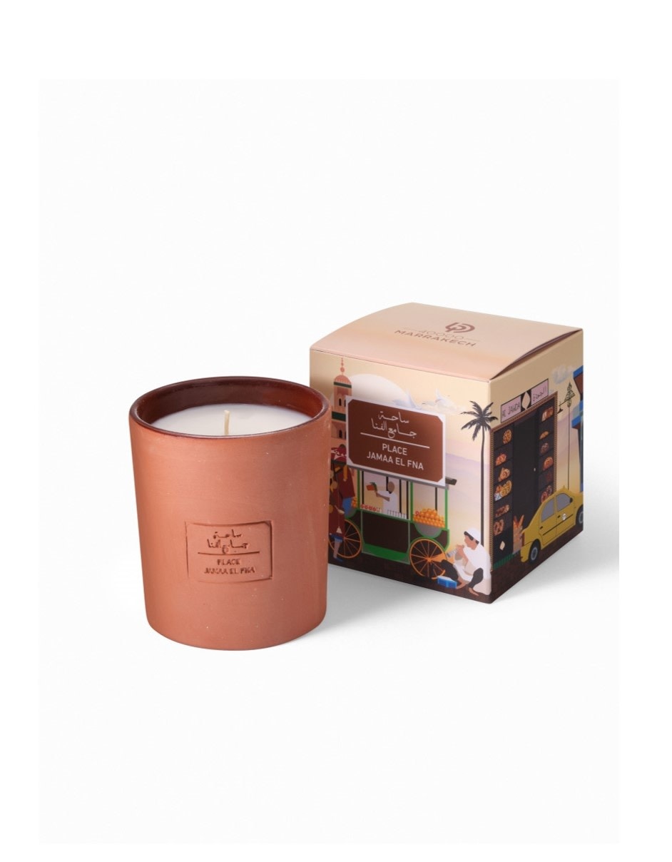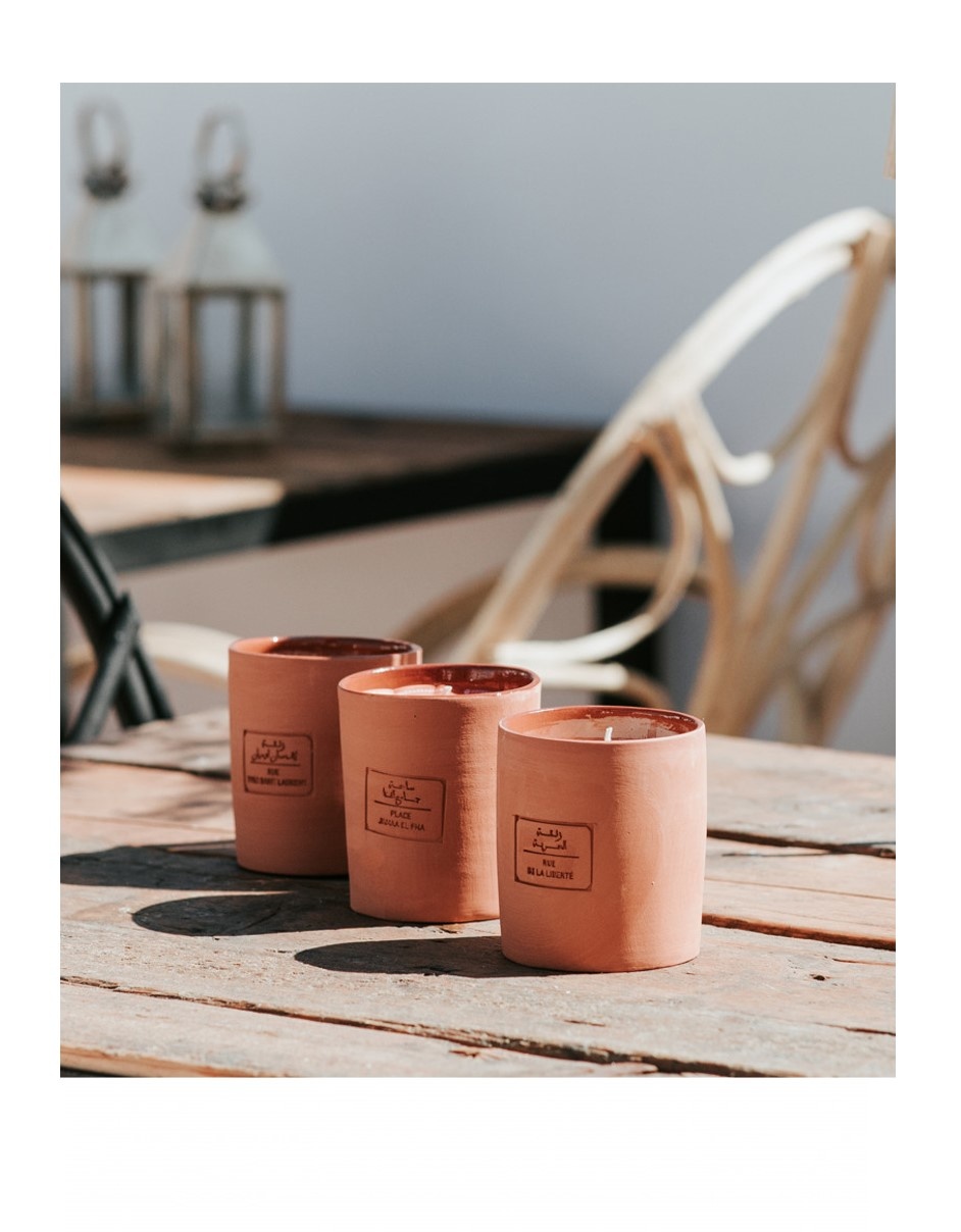 De geparfumeerde kaars Jamaa el Fna doet denken aan de kruiden- en specerijenstraatjes in de Medina. Ontworpen met het oog op een wandeling aldaar, betovert het de vitaliteit van de souk met zijn frisse, zoete, kruidige leergeur.