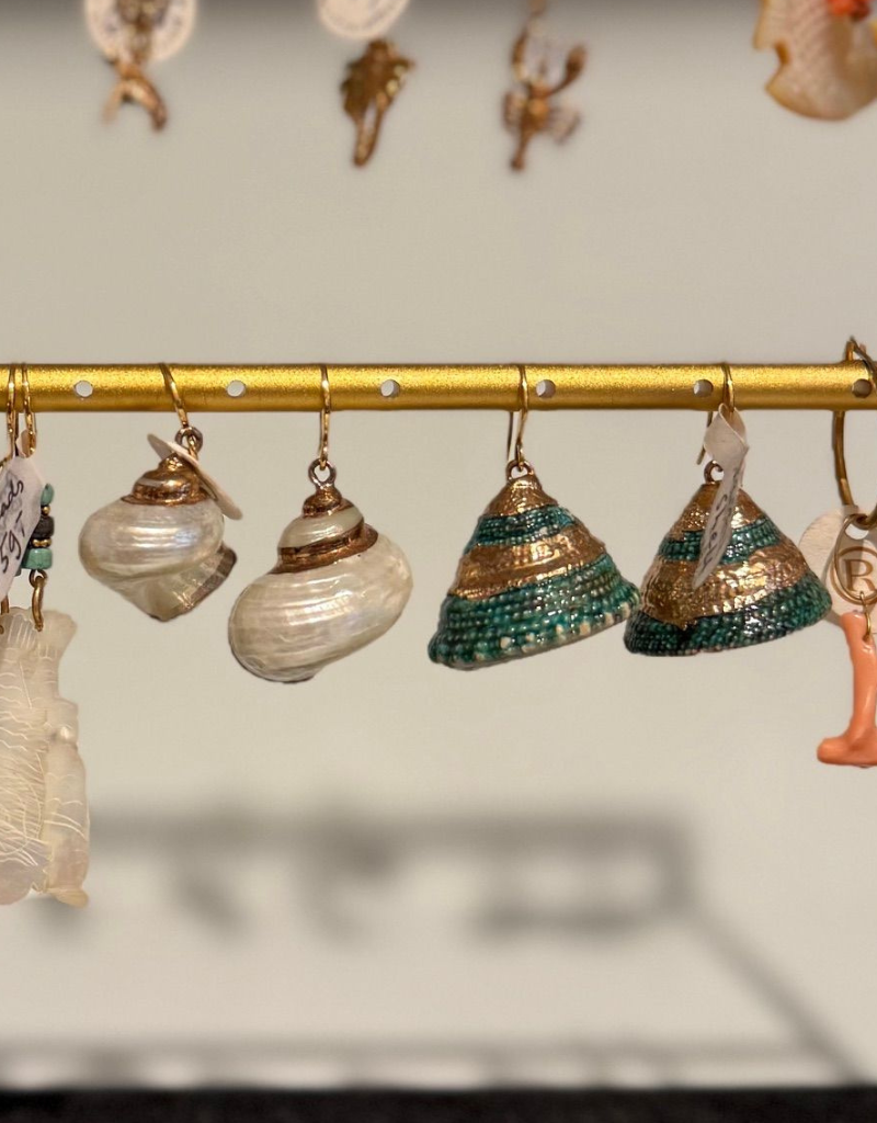 Handgemaakte schelpoorbel in natuurlijke en met kralen versierde varianten.