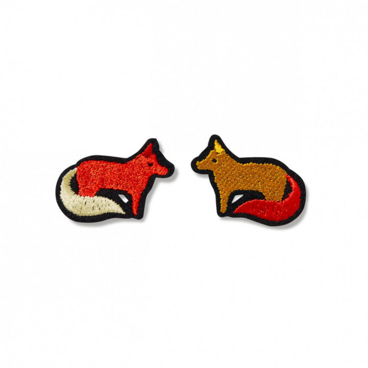 Twee kleine kitsune-patches. Kitsune, of vossen, zijn stamgasten in de Japanse folklore. Je begrijpt waarom, als je deze schattige exemplaren ziet die Macon&Lesquouy heeft ontworpen.