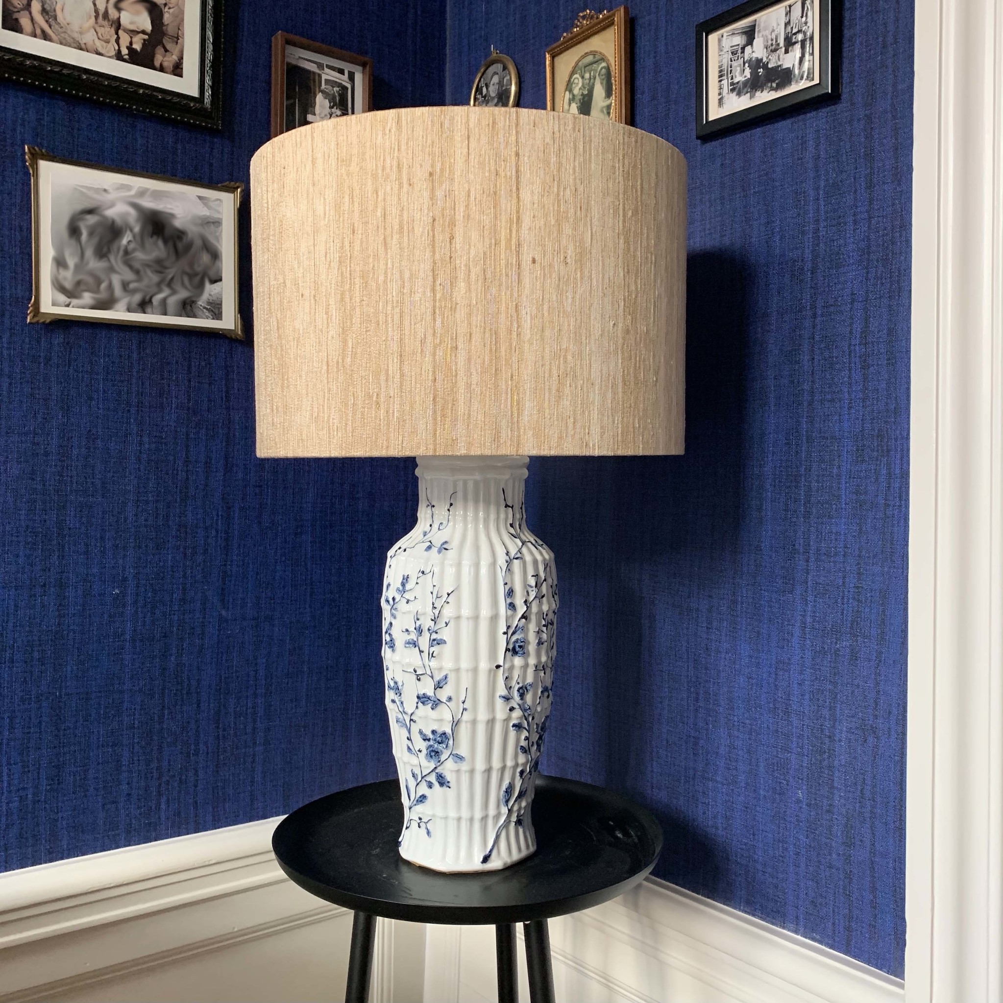 De prachtige kap is speciaal voor deze voet gemaakt door lampenkapkunstenaar 'Shades and More'.
