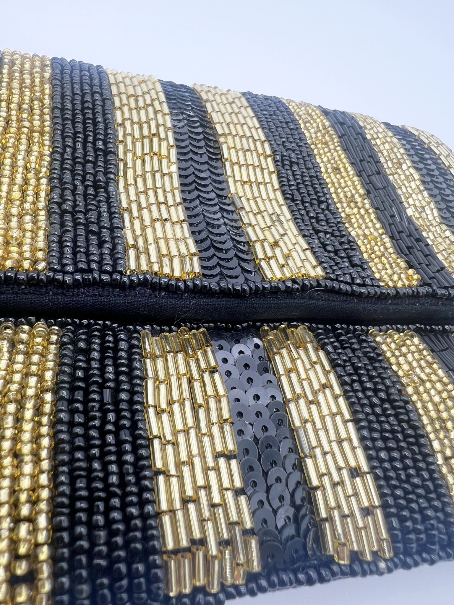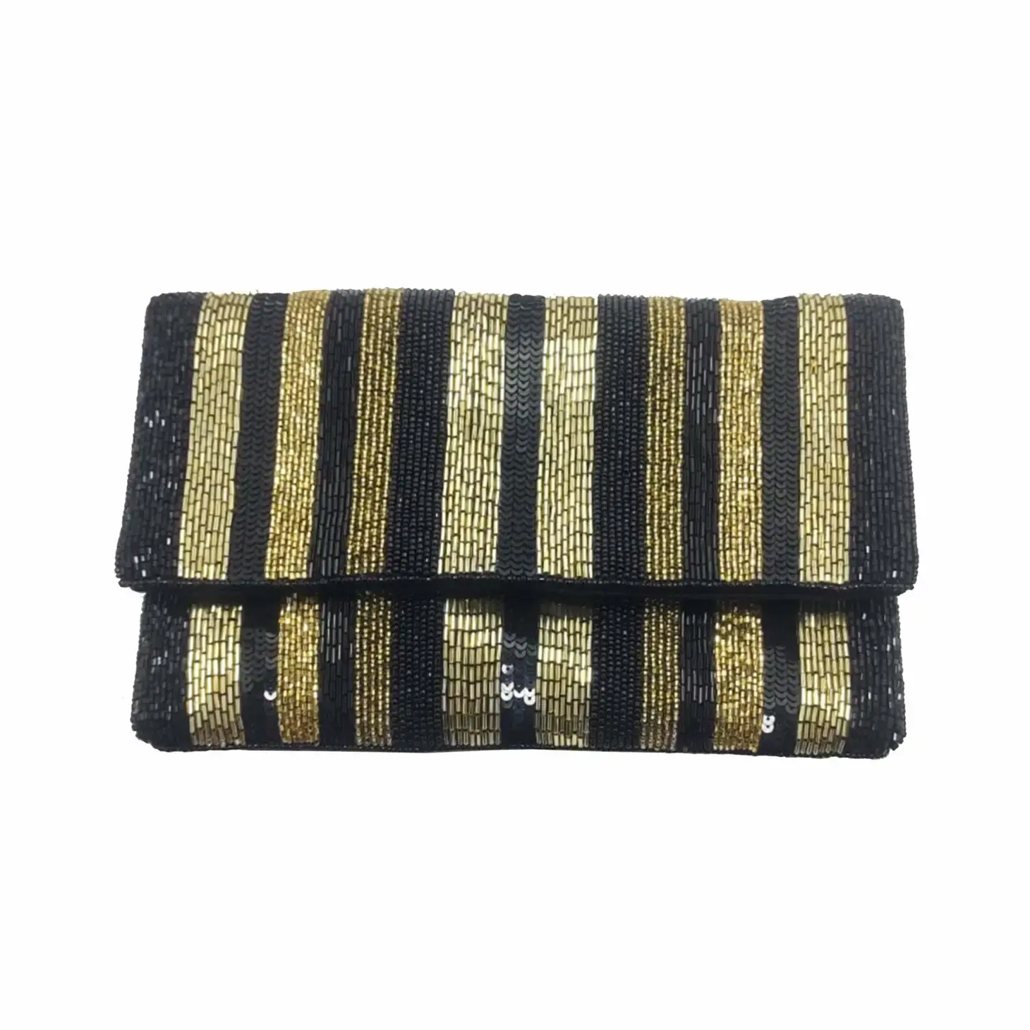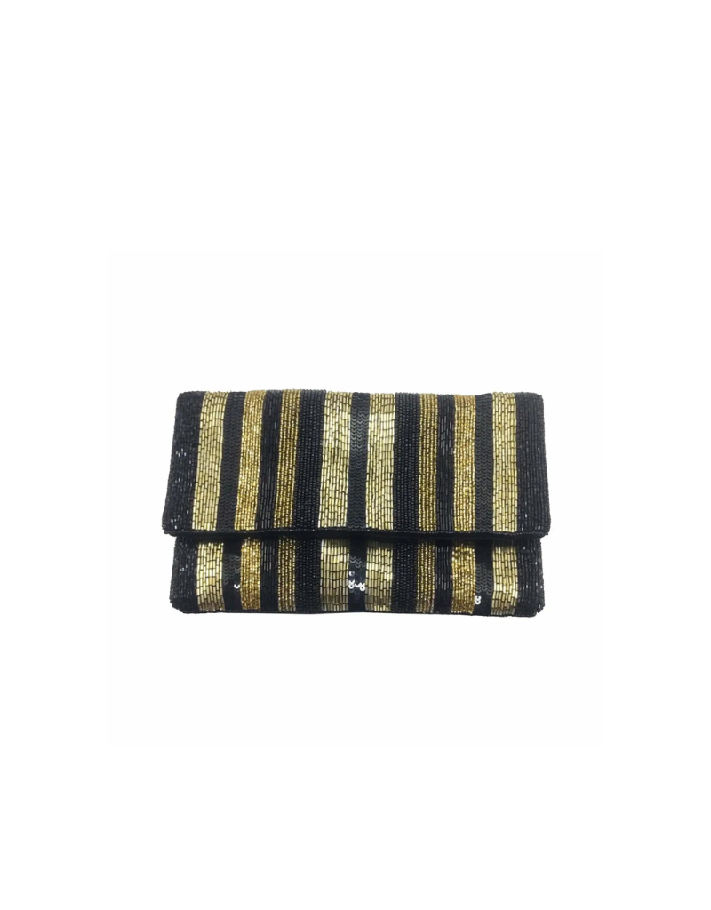 Dit wordt je favoriete tasje uit je collectie! Dit uitgaanstasje die als clutch of als cross body te dragen is, is versierd met kralen en lovertjes en in de altijd goede kleur combinatie goud en zwart!