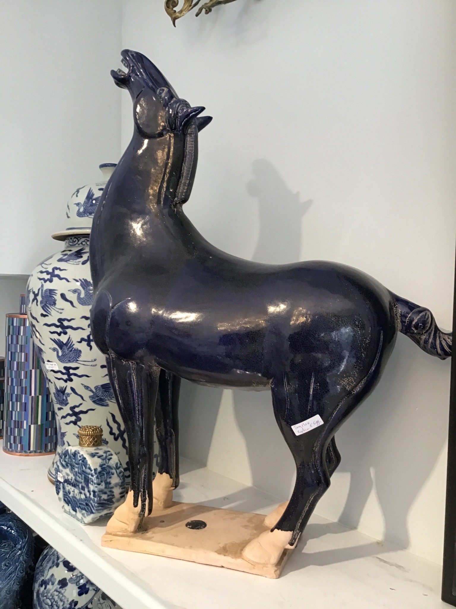 Dit majestueuze terracotta paard is ongelooflijk! Het formaat (56 cm hoog) maakt het al een beeld om niet te missen, maar ook het design en de kleur die geïnspireerd zijn op de Tang-dynastie maken dit een echt prachtplaatje!