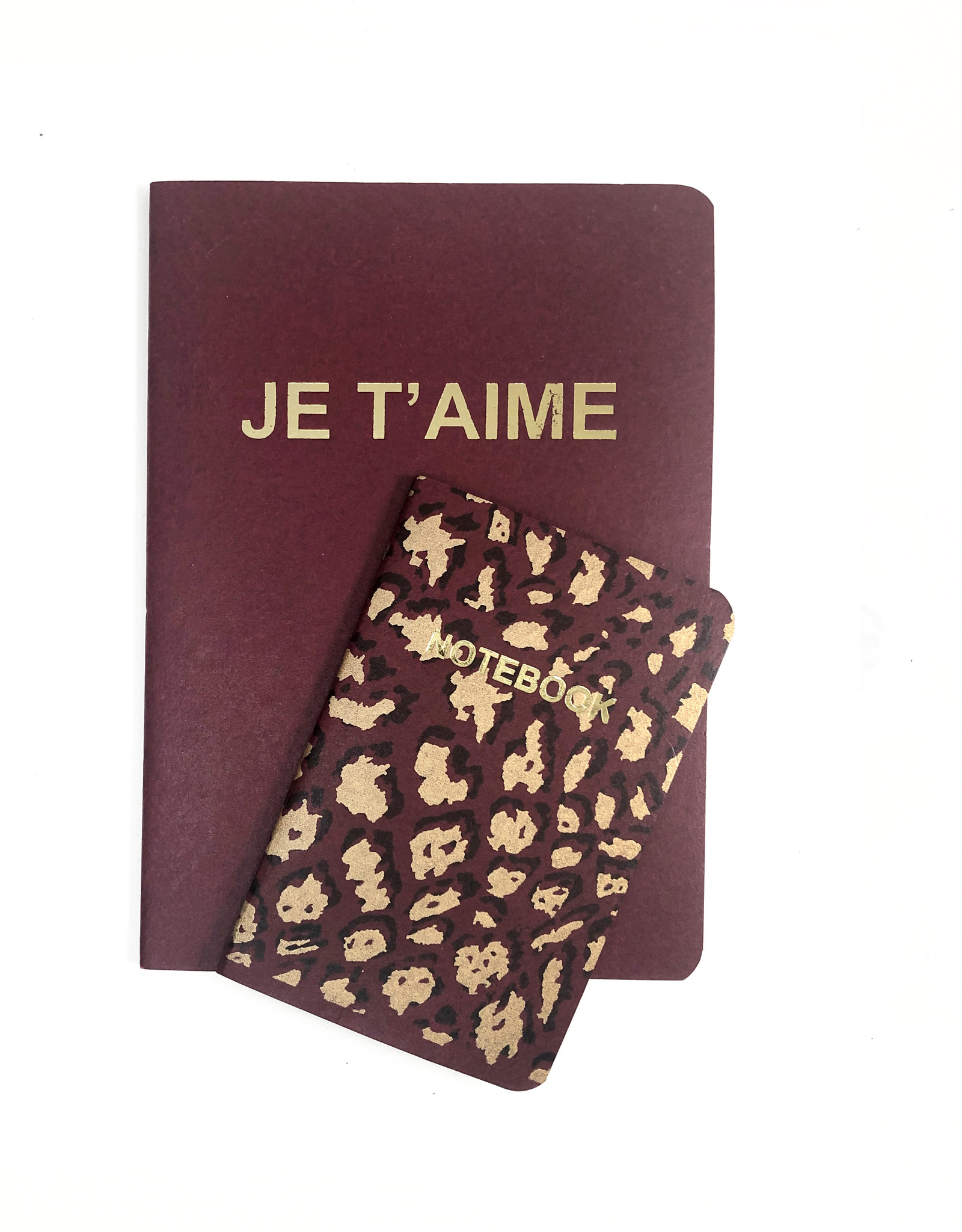 Beoordeel Set van 2 notitieboekjes met zachte kaft - Je t'aime & Luipaard