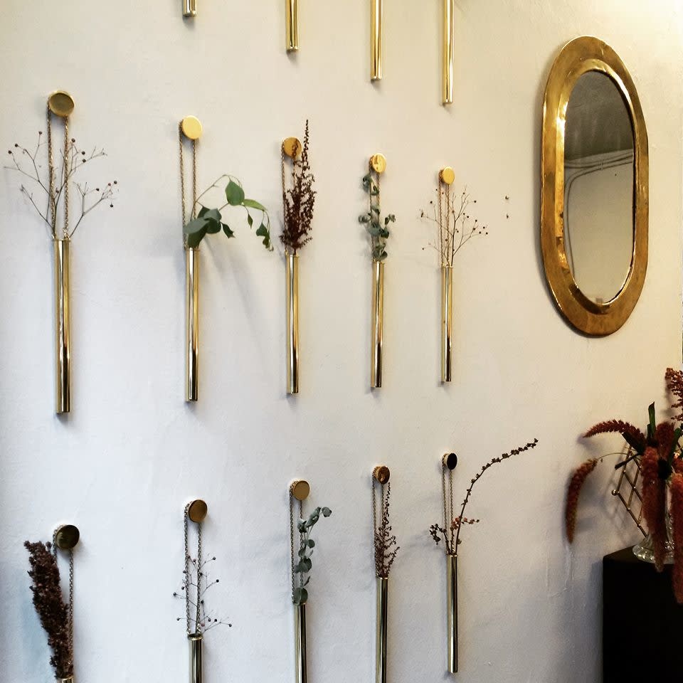Hangende vaas gemaakt van een koperen buis en een verstelbare koperen ketting. Perfect om je muur te versieren met je favoriete droog- of verse bloemen. Het kan aan elk haakje worden gehangen, maar wij houden van de magnetische haak van de empathist. Te vinden in de rubriek gerelateerde producten.