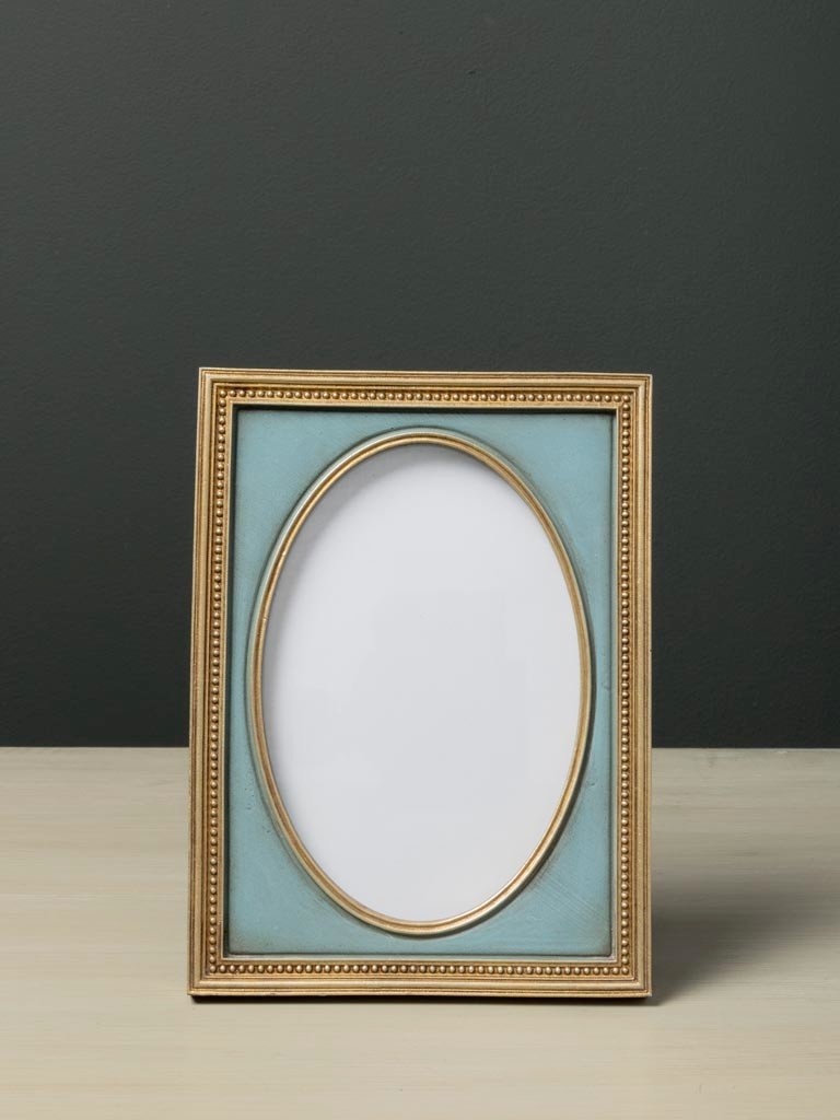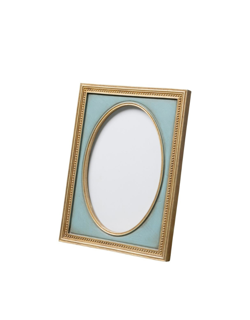 The Altesse photo frame combines a refined rectangular shape with a softly curved oval opening, creating a graceful composition that highlights the photograph inside. The delicate beaded detailing and warm golden edges give the frame a timeless, slightly classical character.