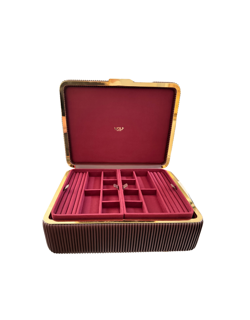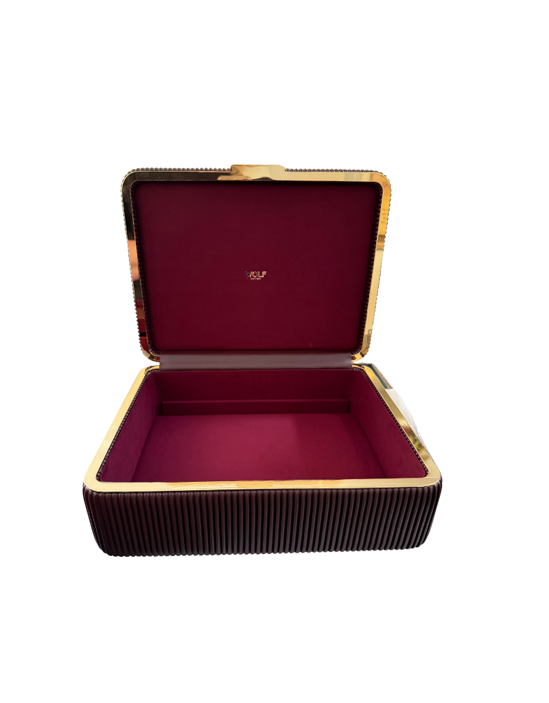 Elevate your jewelry storage with the Bella Large Jewelry Box - Bordeaux by WOLF, available at Curiosa Cabinet. This luxurious jewelry organizer blends timeless design with exceptional functionality, offering the perfect solution for protecting and displaying your jewelry collection.
