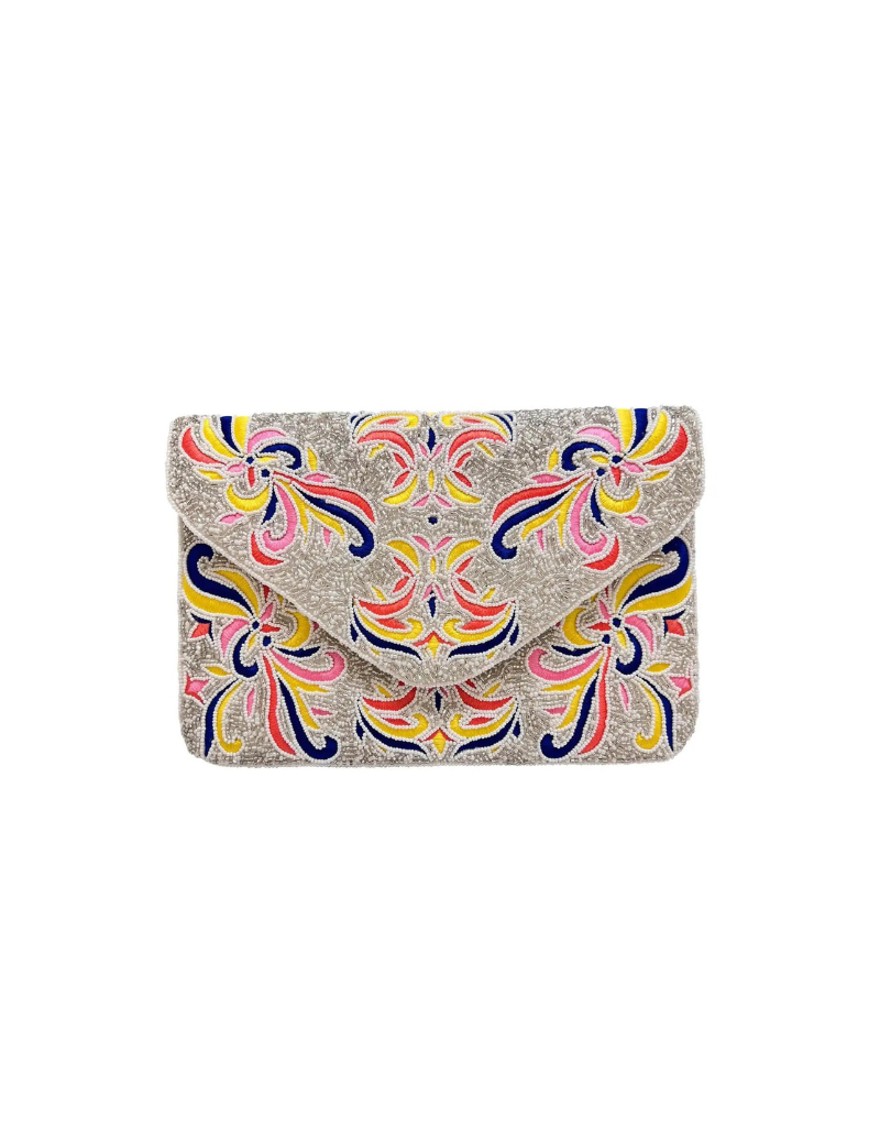 The La Chic Designs clutches are designed in the United States and hand crafted in India. The styles are produced in limited numbers and handwoven on looms of cotton, jute & Jacquard.