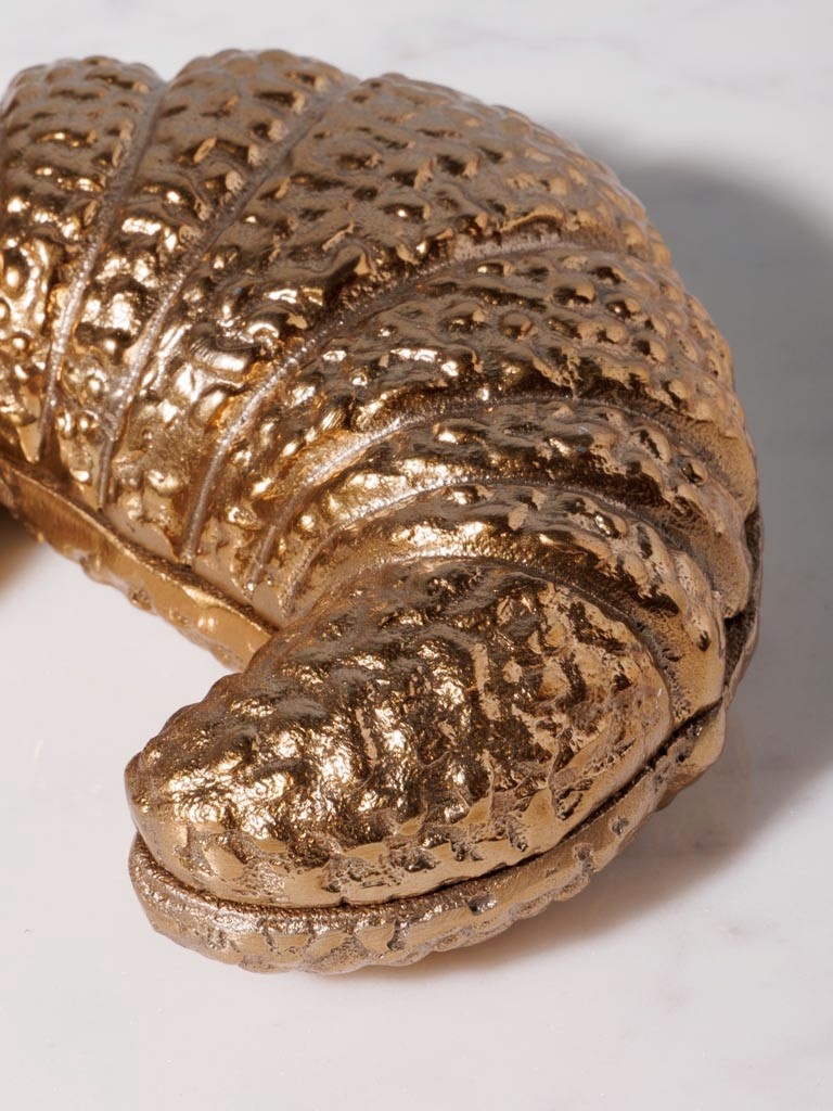 Indulge in the charm of timeless design with the Tiffany Croissant Box—a beautifully crafted aluminium storage piece that adds elegance to any space. Inspired by the delicate folds of a freshly baked croissant, this unique box is perfect for keeping small treasures, jewelry, or keepsakes safe in style.