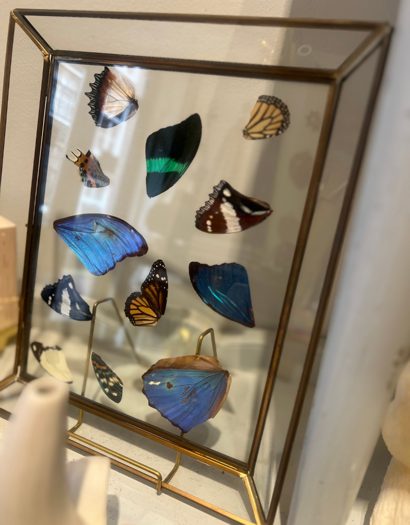 Beautiful small tray or large coaster made of glass. With 'hidden base' where you can put a card, photo, flower, etc. We have already made a variation. A tray with real butterfly wings!