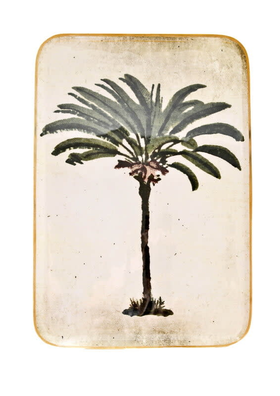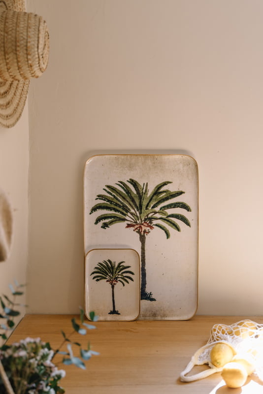 Stunning palm tree tray in three different sizes. Great to use for serving, but just as nice to have standing upright as an artwork in your home.