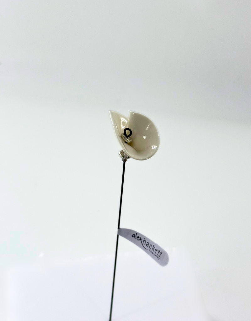 Delicate in form and sculptural in essence, this small porcelain flower by Alex Hackett evokes the soft curves of a calla or lily cup. Expertly handcrafted from fine porcelain with a high-gloss ivory glaze, it offers an understated elegance perfect for minimalist or poetic arrangements.
