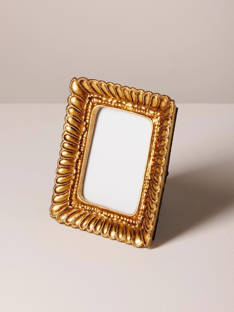 This charming set of three photo frames features different shapes — oval, square and rectangular — all finished with an elegant fluted border in warm gold. The decorative texture gives the frames a refined, slightly vintage-inspired look while remaining playful and easy to combine.
