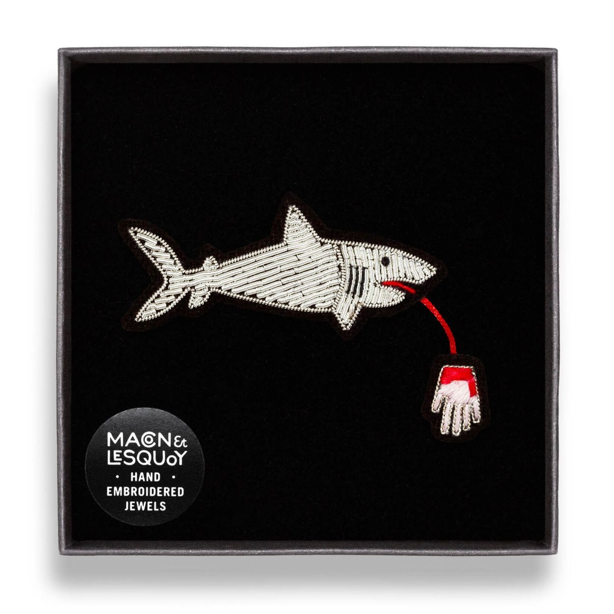 Create an accountAll brooches of Macon & Lesquoy are hand embroidered in Pakistan. The detailed designs blend elegance and humor, making each piece an eye catcher.