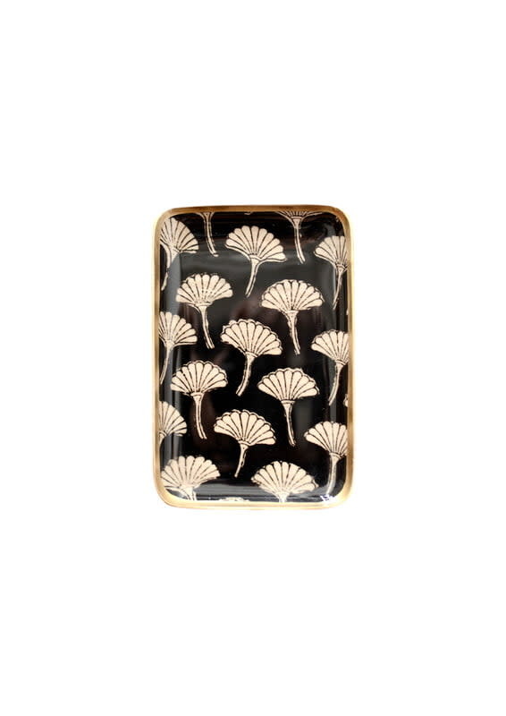 Beautiful enamel tray for 1 cup or two small cups. Nice look and feel, smooth surface. You can of course also use this tray for trinkets, for storing various other decorative objects, vases etc. This is one has a ginko deisgn, but there are many more designs to choose from.