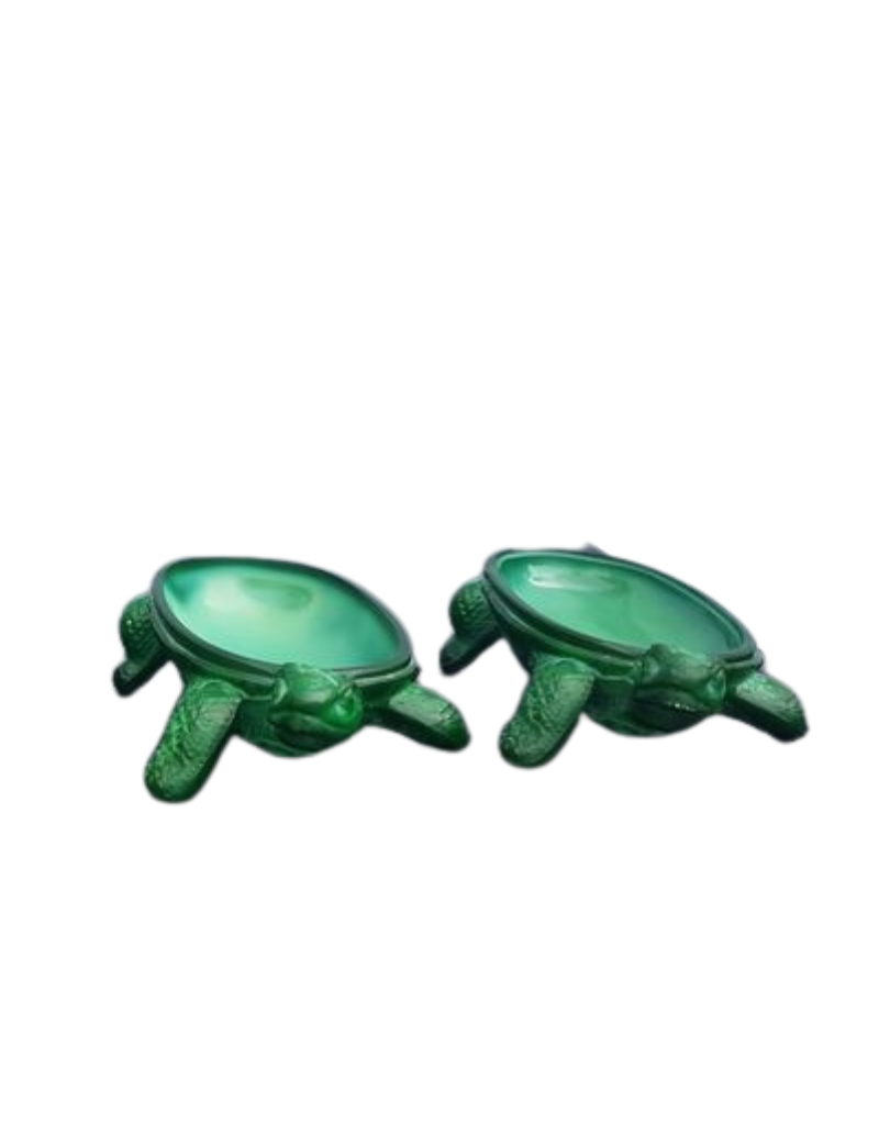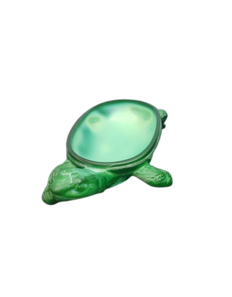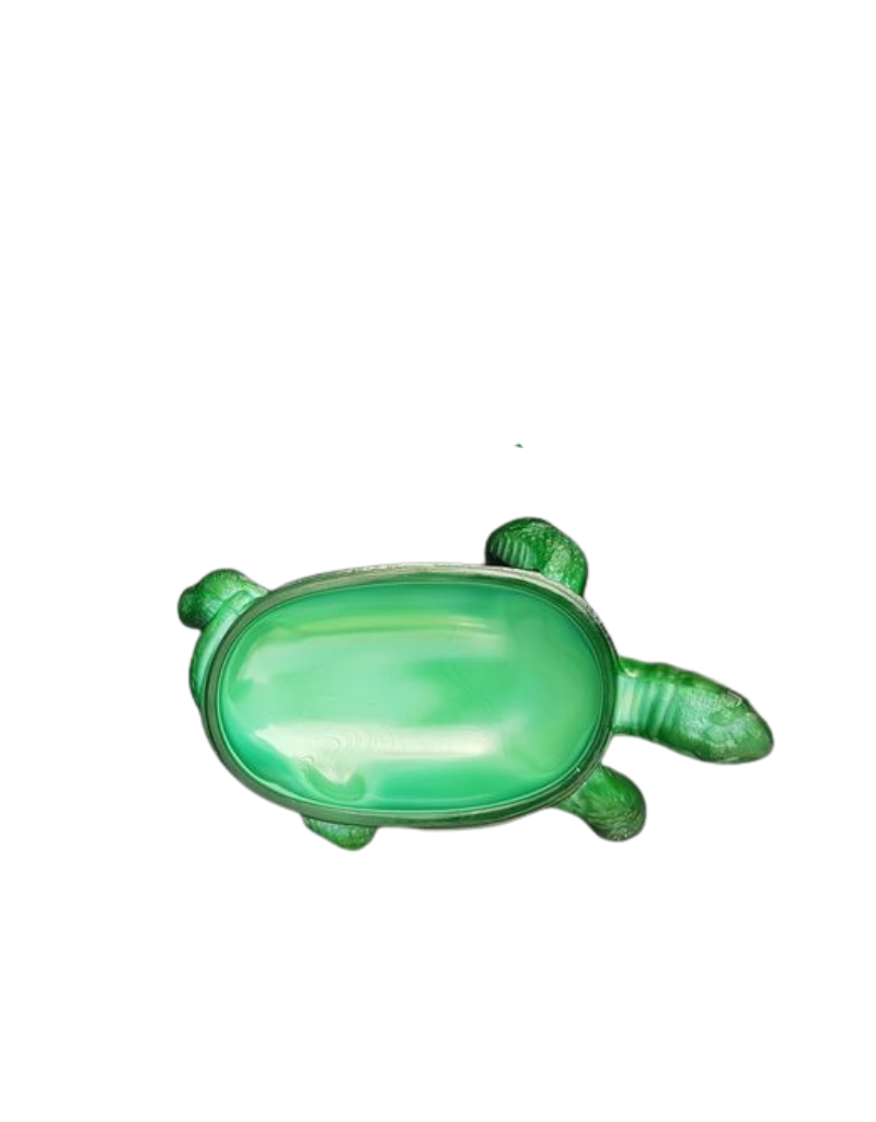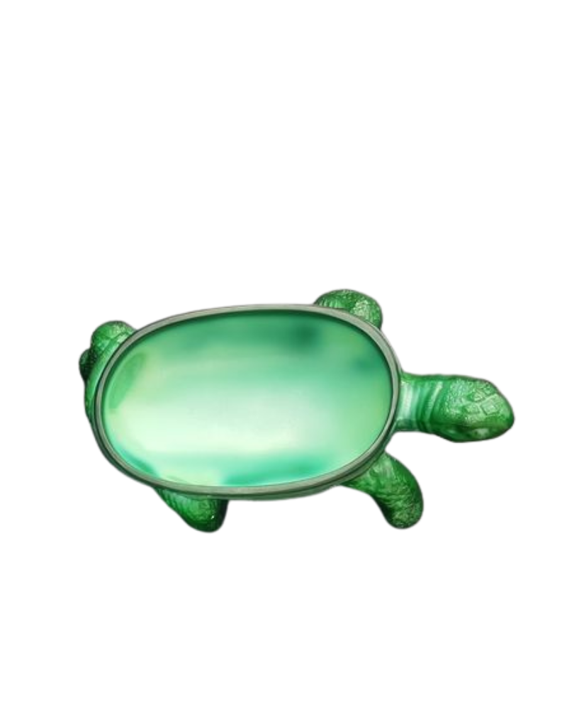 The fact that the shield lid of this turtle tray of Malachite glass is missing is a shame, but it is still very usable, interesting and beautiful.