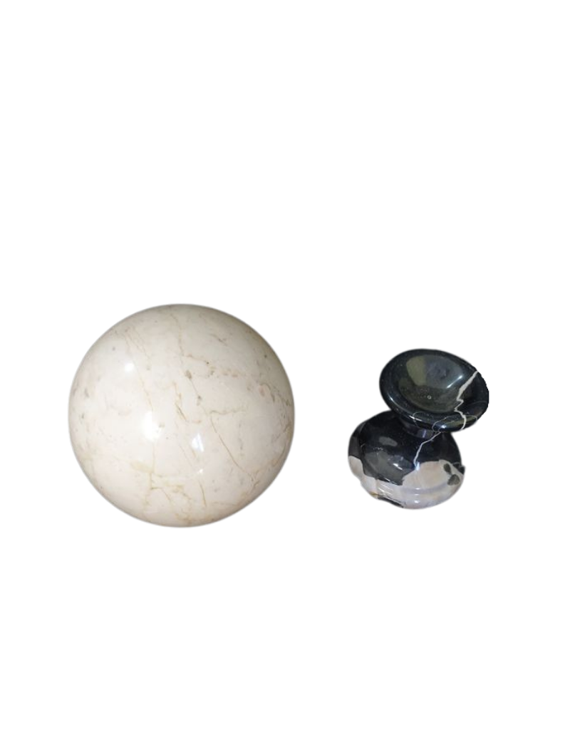 Create an accountThis vintage paper weight consists of a solid white Carrara Marble sphere and a black marble base with white veins.