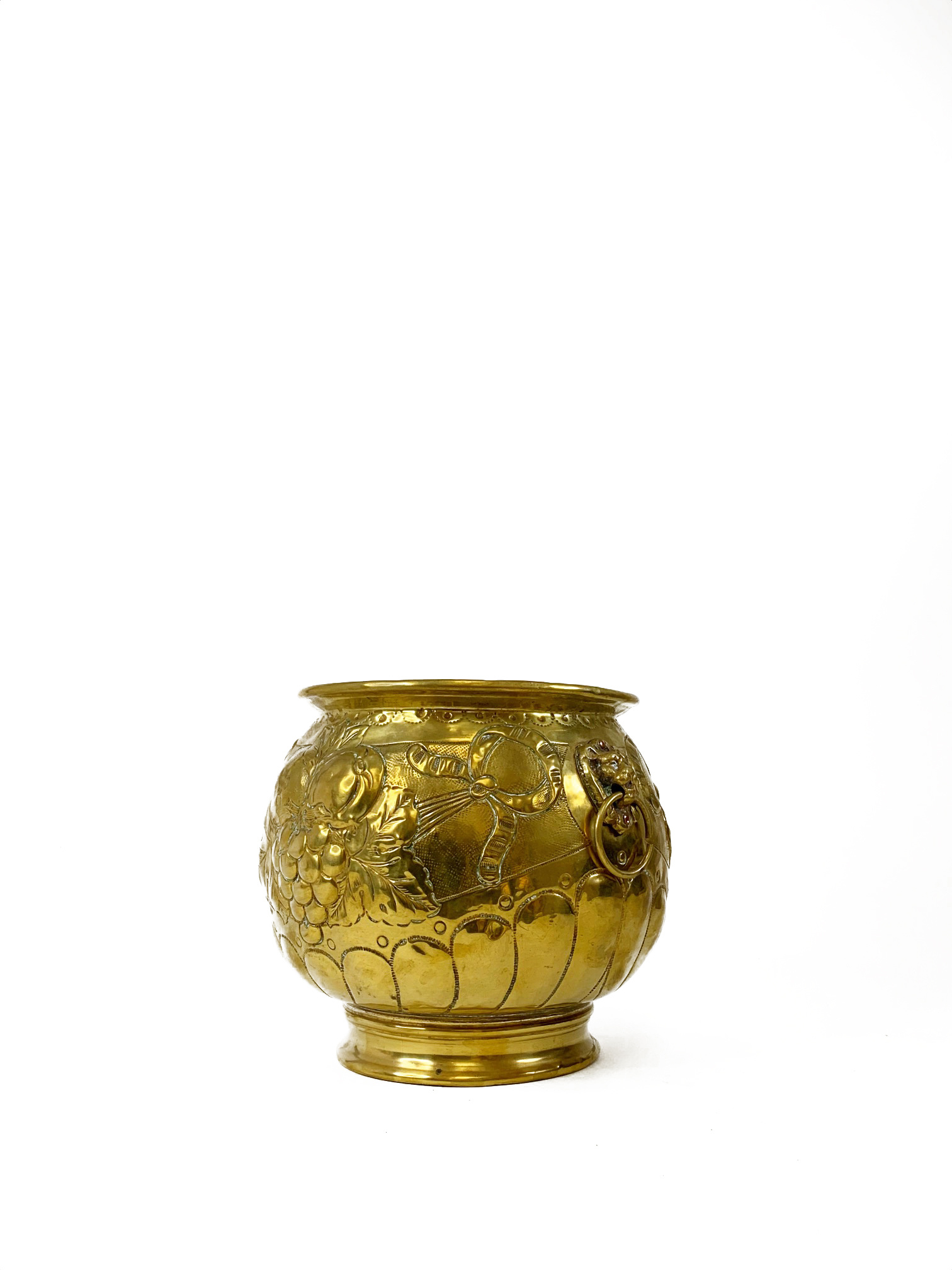 Create an accountVintage copper planter pot. Richly decorated with all kinds of fruit, ribbons and other motifs.